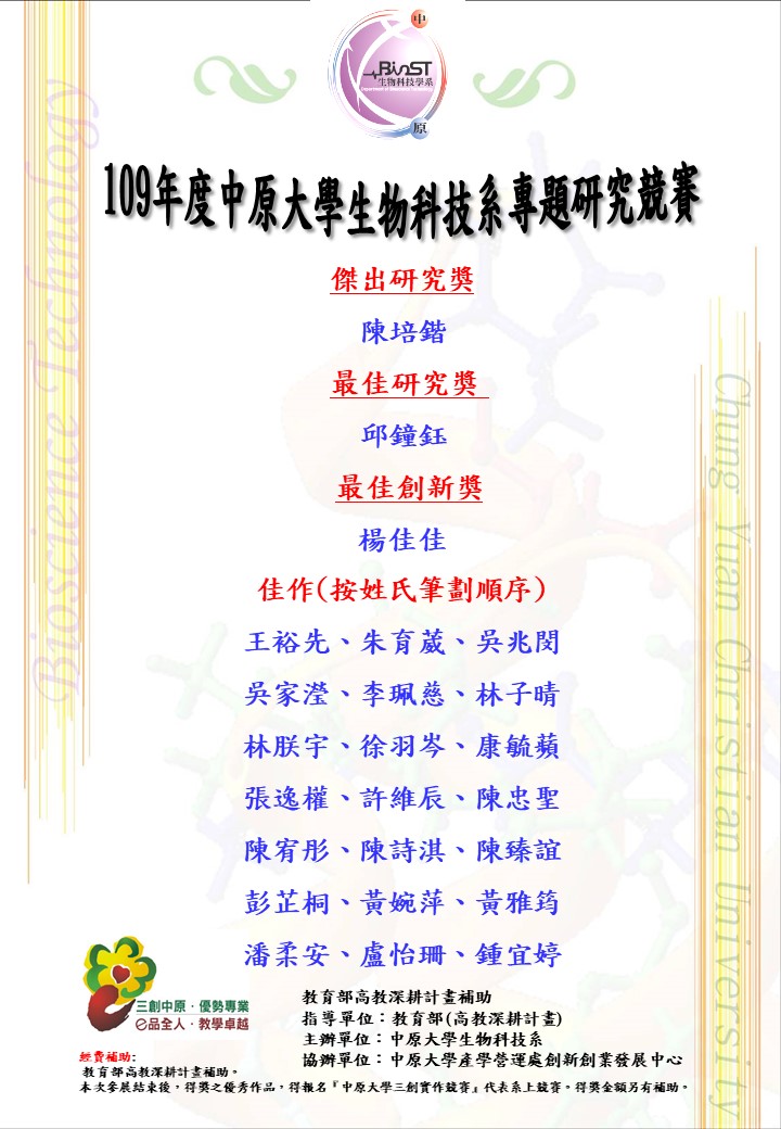 2022 © 中原大學生物科技學系 Department of Bioscience Technology, Chung Yuan Christian University