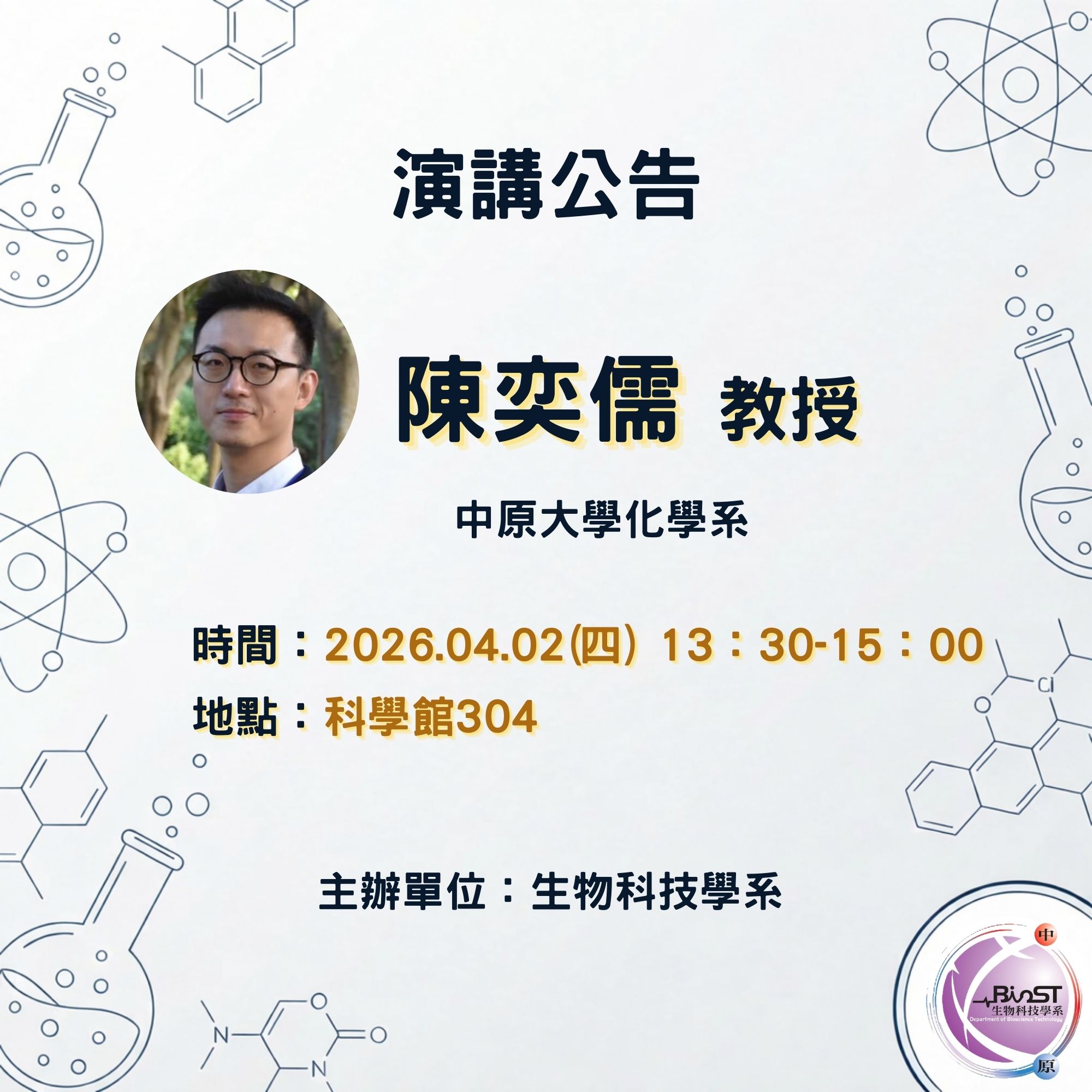 講員:陳奕儒老師(中原大學化學系)